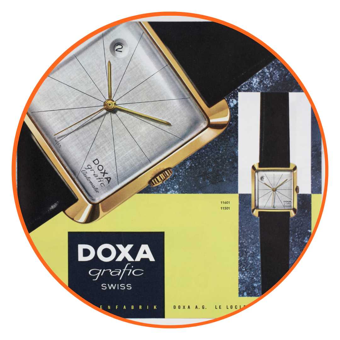 DOXAs estetiska meriter cementerades med en omedelbar klassiker 1957: en minimalistisk, Bauhaus-inspirerad “Grafic” klockkollektion.