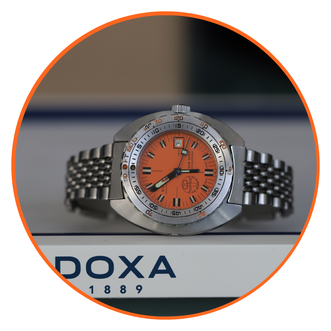 Från 1968 till 1975 delades ungefär 150 klockor ut, var och en graverad med ett serienummer som matchade dykarens utrustning. 1968 lanserade DOXA även “Army”-klockan, designad för militära dykare, med ett svart hölje, svart bezel och sand-beige urtavla för exceptionell läsbarhet under vattnet.