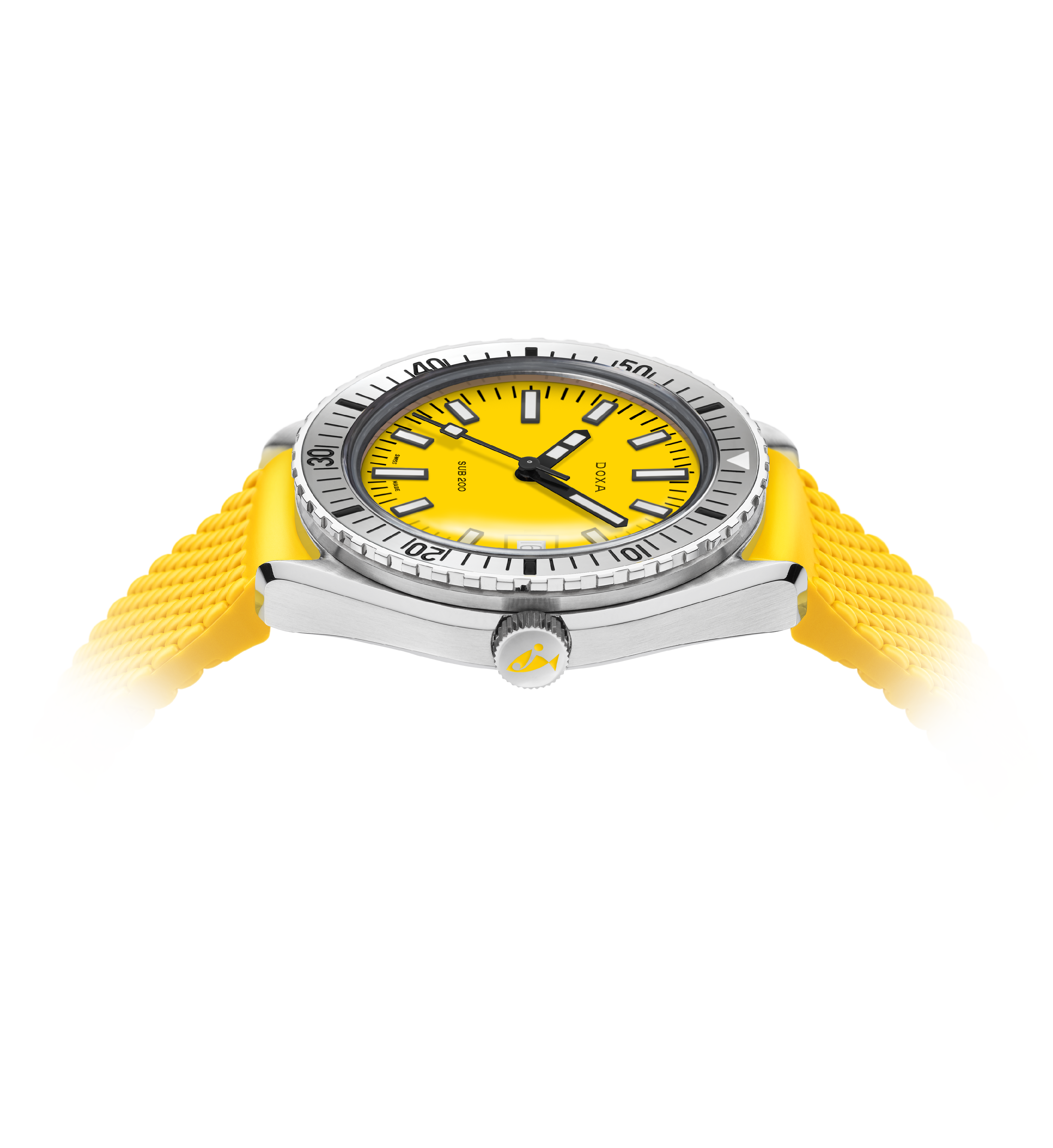 Denna 3-hands dykarklocka presenterades på Baselworld 2019 och har en boett tillverkad av 316L rostfritt stål av högsta kvalitet. SUB 200 har en diameter på 42 mm med ett reptåligt safirglas med antireflexbehandling och den distinkta böjningen hos det välvda plexiglas som användes förr i tiden. Modellen är vattentät ned till 200 meters djup (20 ATM) och har en enkelriktad roterande boett. Alla element som ger dykrelevant information, inklusive ramen, har en Super-LumiNova® självlysande beläggning. Armbandet är tillverkat i 316L rostfritt stål och har ett vikbart lås med DOXA-fisksymbolen.