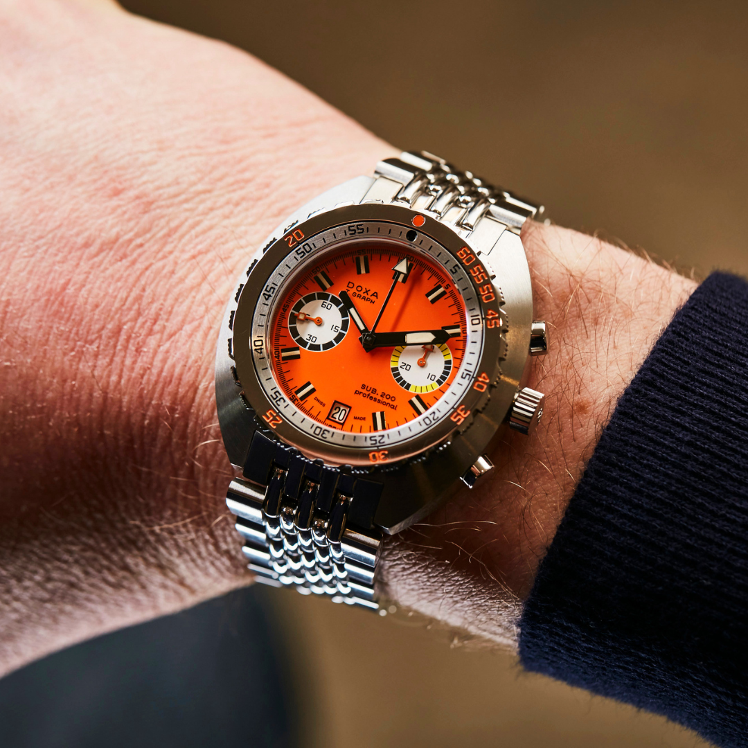 50 år senare presenterar DOXA en omtolkning av sin ikoniska modell. Efter en första begränsad upplaga i 18K guld, avslöjar DOXA SUB 200 T.GRAPH i en ny begränsad serie i rostfritt stål.