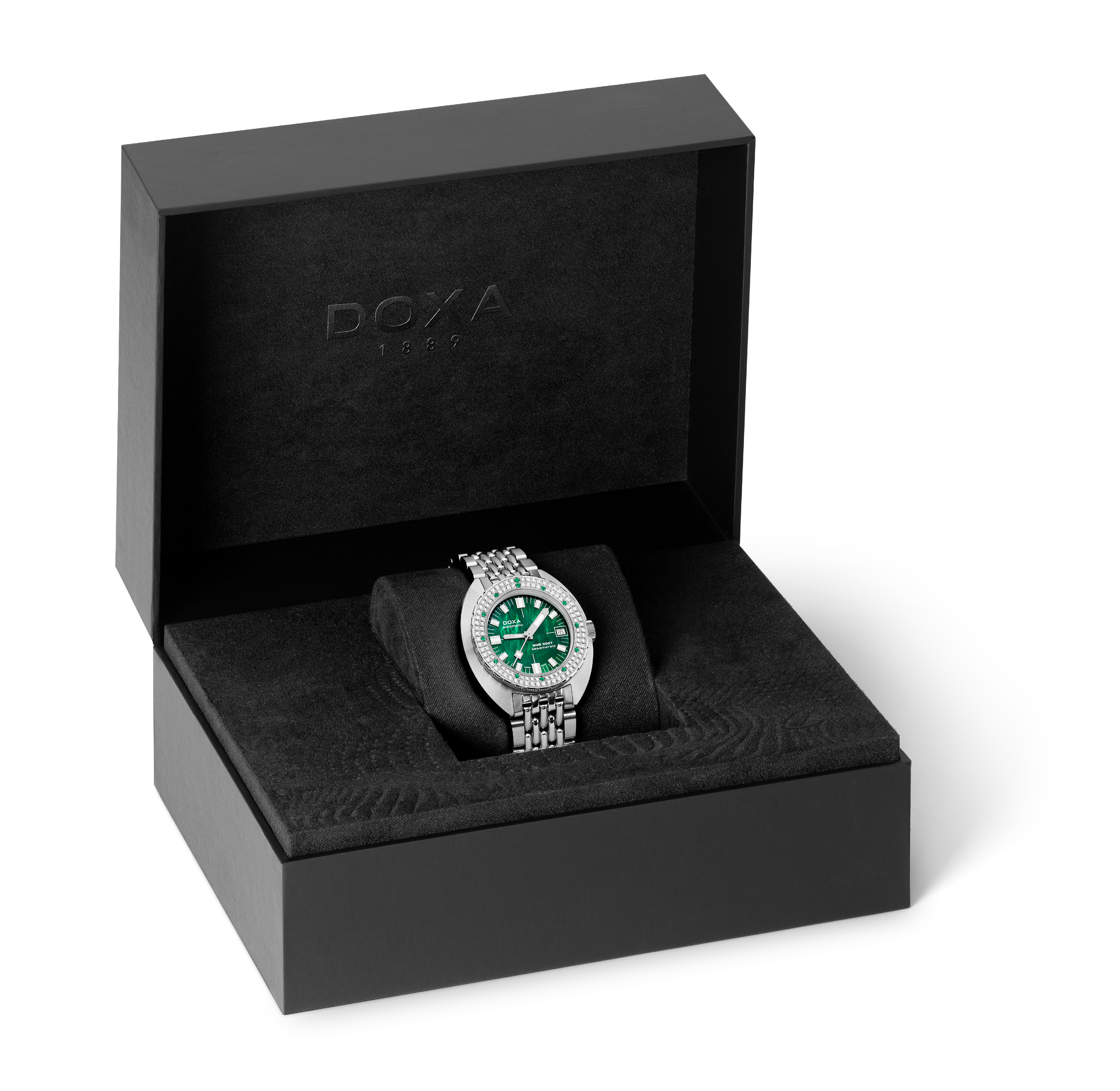 Denna omsorgsfulla ädelstensinfattning kompletterar vackert iriseringen av urtavlan som är tillverkad av naturlig pärlemor. Detta ädla material ger varje SUB 200T urtavla en aura av grace och elegans, som accentueras av dess ständigt föränderliga lyster. Pärlemor kommer från havets djup och uppvisar ett unikt samspel av färger och texturer, format av det skal som det kommer från. Detta ger varje klocka sin egen distinkta karaktär, vilket gör att ingen klocka är den andra lik och tillför en nivå av skräddarsydd exklusivitet.